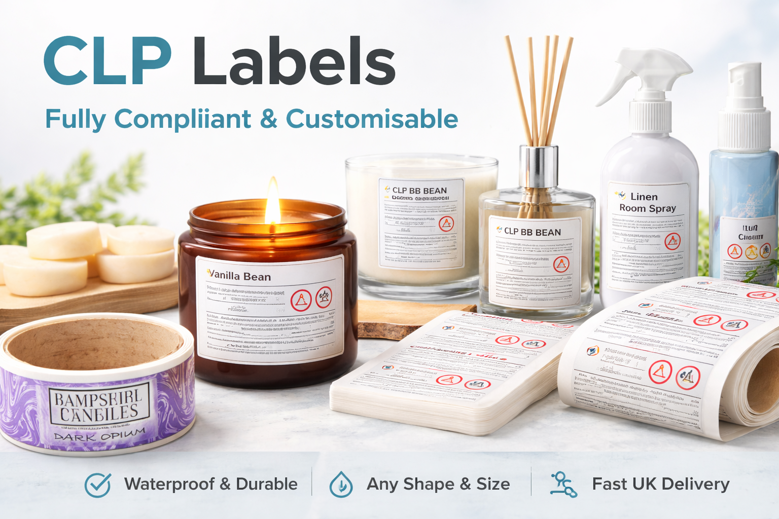 If, for example, you’re an independent candle maker who focuses on sustainability and reducing plastic waste, you might want to consider ordering paper CLP labels. Our