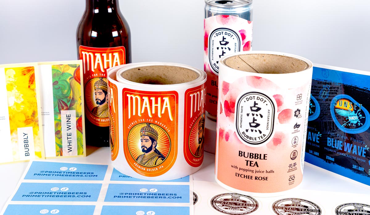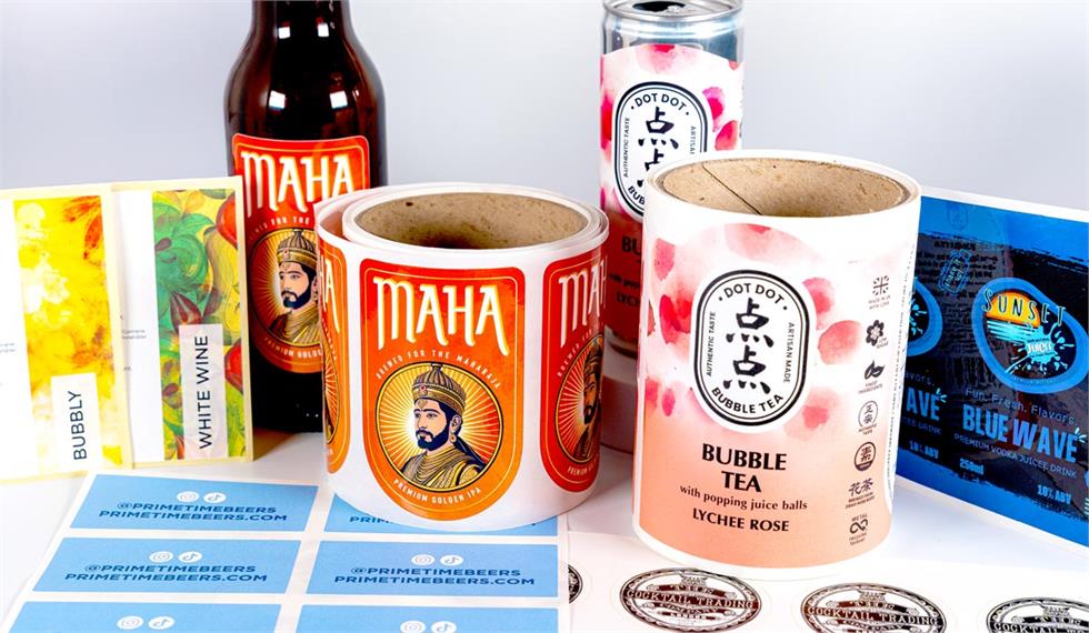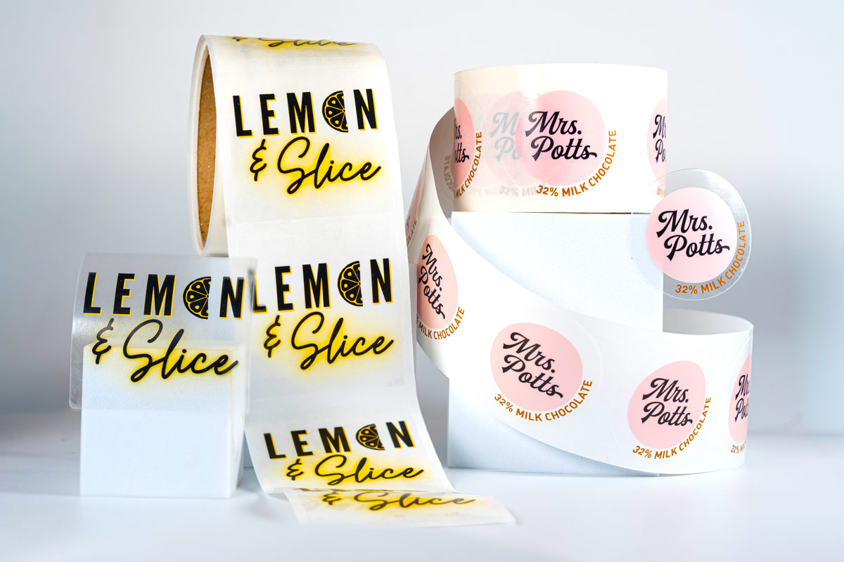 - Product stickers for cosmetics, food, beverage, takeaway and retail packaging